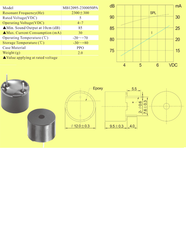 基本參數(shù) 產(chǎn)品料號(hào):MIMS12952300 產(chǎn)品尺寸(mm):12*9.5 額定電壓(V):5 諧振頻率(Hz):2300 聲壓值(dB):≥85 產(chǎn)品用途:廣泛應(yīng)用于APP智能家居控制器、智能機(jī)器人、無(wú)人機(jī)、AI穿戴設(shè)備、安防系統(tǒng)、醫(yī)療設(shè)備、車(chē)載系統(tǒng)、支付系統(tǒng)、通信設(shè)備,各種PDA等產(chǎn)品領(lǐng)域